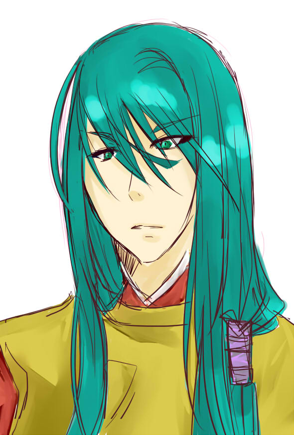 あとこの絵は髪色変えてます。元の色の紺色にすると画面が真っ暗に。すごく暗い。というか私の設定画だと髪の色が濃い人が圧倒的多数で、色素薄い人がほとんどいないっていう。義経とか与一くらい。でも小野宮系統は藤原だけど勝手に青系統に。佐理が↑みたいな青緑というか。