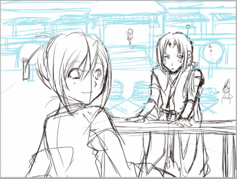 トップ絵の予定。最初は行成と佐理(右)だけの虫干ししてる絵だったんですが、背景描いてたら寂しかったので小野宮弟の大掃除絵に変更になりました。虫干しはもちろん床掃除から庭の手入れなどなど。自分でやるのかよというツッコミはナシの方向ですよ。
