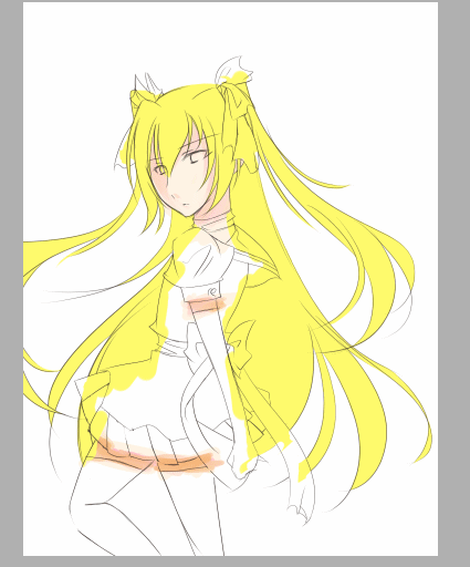 難しいですね。あとリボンも。え、メイド忠平の話ですが、何か?(爆)とりあえず線画は終わったので色塗りできます。フリルは挫折したので普通のスカートになりました。スカート履いてる時点で普通でないとか言ってはいけません。